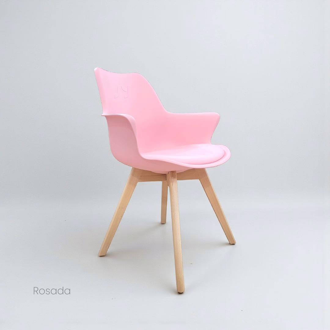 Silla de polipropileno, tapizado acolchado en ecocuero, patas de madera