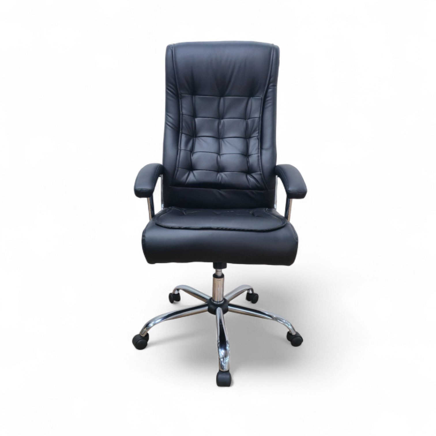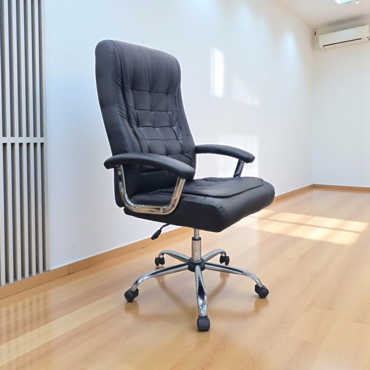 ✨Silla Gerencial giratoria con sistema basculante y ajuste de altura, resistente tapizado en eco-cuero color negro.