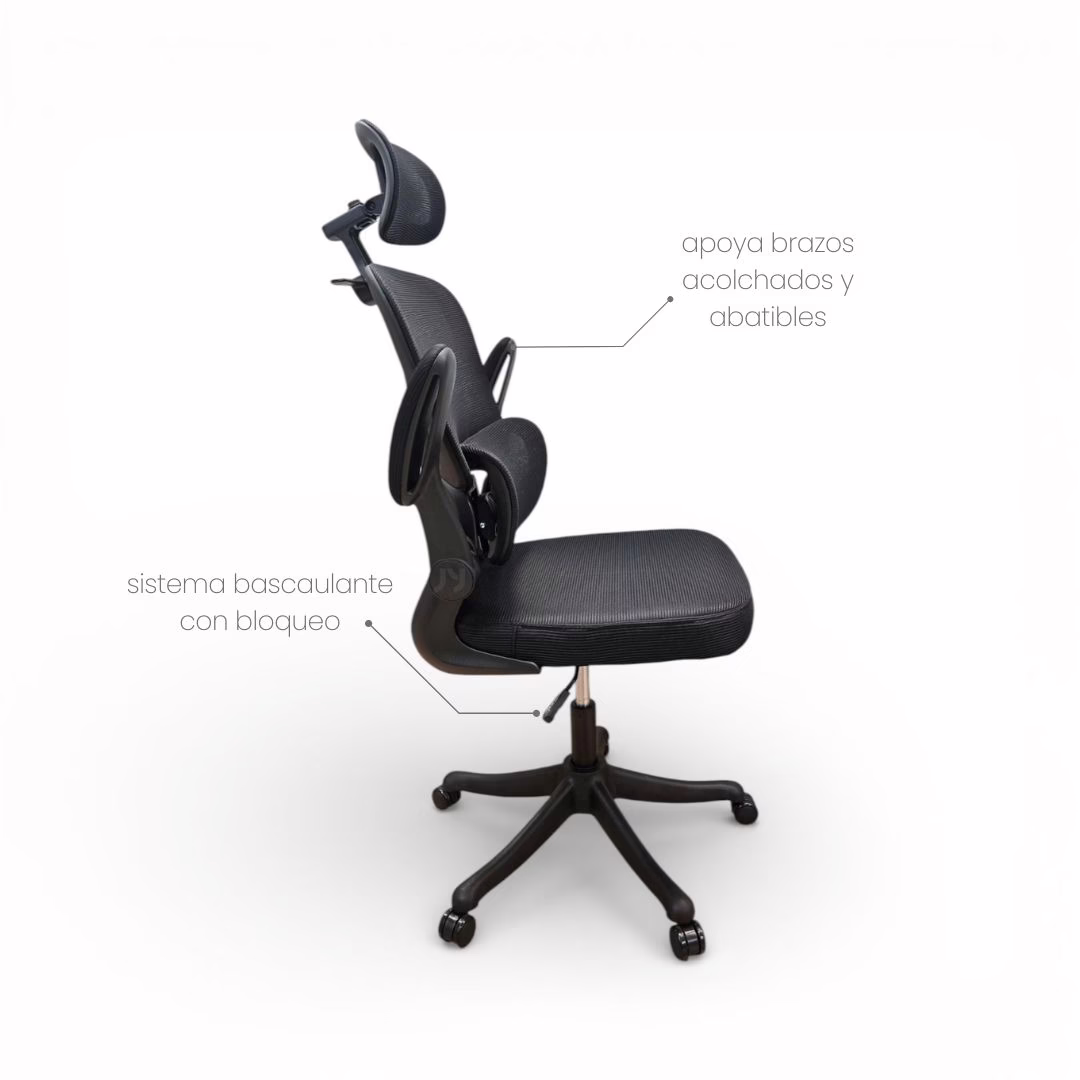 - ⭐Soporte lumbar regulable en altura y profundidad.